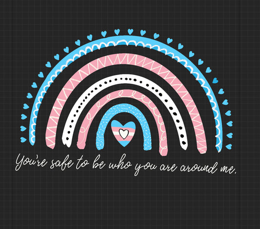 "You're Safe To Be Who You Are Around Me" 2.0" x 1.4" Trans Rainbow Clear Sticker